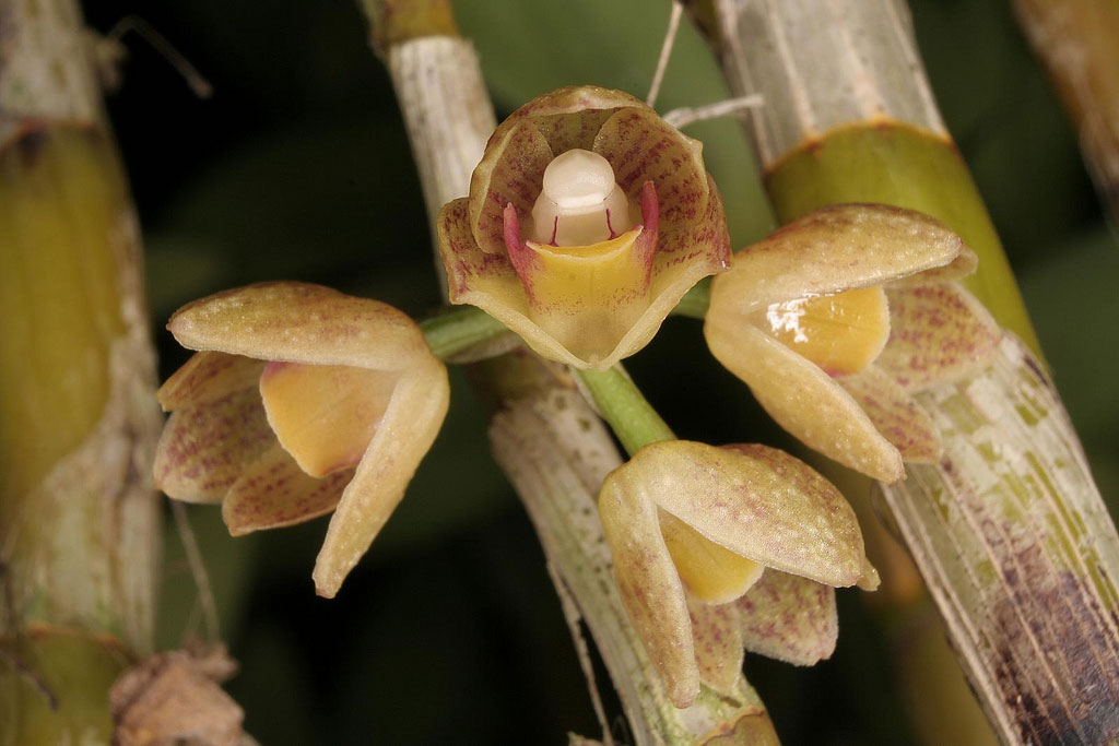 Found in Myanmar, Thailand and Vietnam as a small to medium sized, hot to cool growing epiphyte with erect, clustered, canes that are narrowest below and swollen above carrying 4 to 6, oblong to lanceolate leaves that blooms on a short inflorescence arising from the nodes near the apex of the cane and having tightly clustered flowers occuring in the late spring and early summer