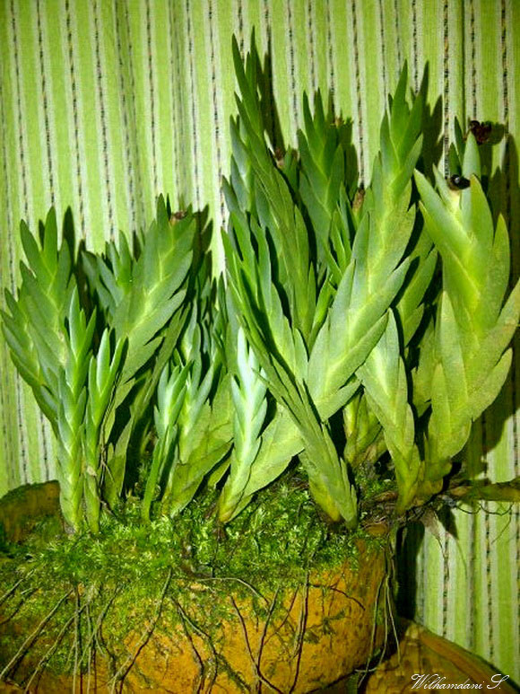 Tìm thấy ở Bắc Sumatra ở độ cao khoảng 700m với một kích thước nhỏ, phát triển trong vùng khí hậu ấm áp, sống phụ sinh với thân cây thẳng đứng, không phân nhánh mang nhiều lá, dày đặc khắp thân cây, bề mặt lá mịn, nhọn giống như dao. Hoa nở vào mùa xuâ, hoa ngắn, phát sinh từ đỉnh thân cây.